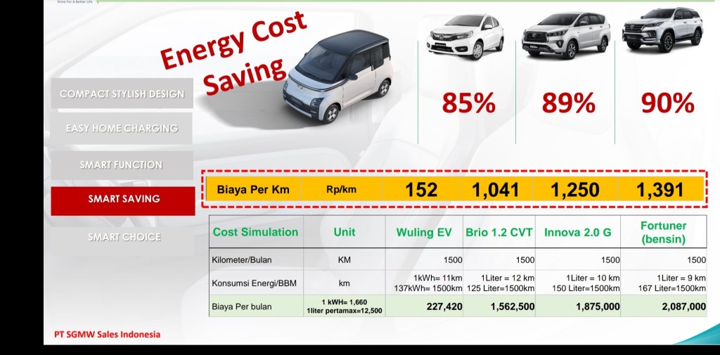 Air Ev merupaan kendaraan listrik berbasis city car, dengan kombinasi design futuristik dan teknologi andal, mengantarkan mobil listrik ini menjadi mobil yang paling efisien dalam cost operationalnya, selain sangat irit pada penggunaan energinya yang mampu menempuh jarak rata rata 11km hanya dengan 1kwh dengan biaya 1,660 rupiah saja ,perawatan mudah, Pajak sangat kecil, bebas progresif dan bebas ganjil genap membuat mobi ini kian diminati, dapatkan untuk promo sekarang juga .segera hubungi kami untuk ketersedian stok dan promo.